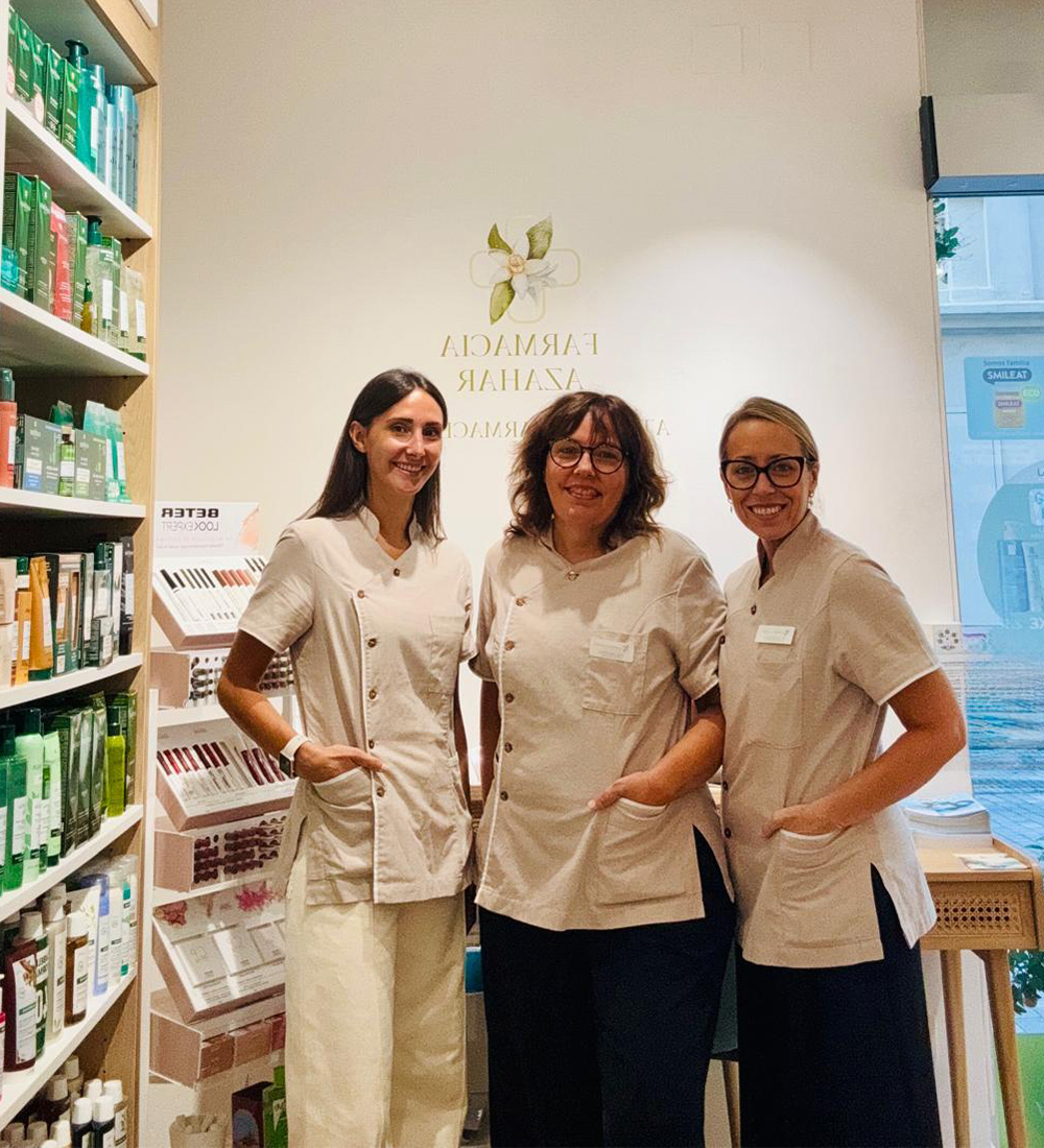 Elegir el nombre fue sencillo. Soy sevillana y el azahar me representa: por mis raíces, por las propiedades de esta flor y por todo lo que me transmite. En 2024 nació Farmacia Azahar, un proyecto personal que arrancó junto a Roser, la primera persona que me acompañó en esta aventura.